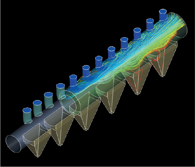 Voor het koelen van rookgas met een hoge temperatuur, zoals sinteruitlaatgas, is een sproeicontrole en druppeldiameter nodig die volledige verdamping mogelijk maken. Ikeuchi maakt gebruik van CFD-simulatie bij het selecteren van de sproeiers en het controlesysteem om ervoor te zorgen dat het water dat uit onze koelsproeiers wordt gesproeid volledig verdampt.