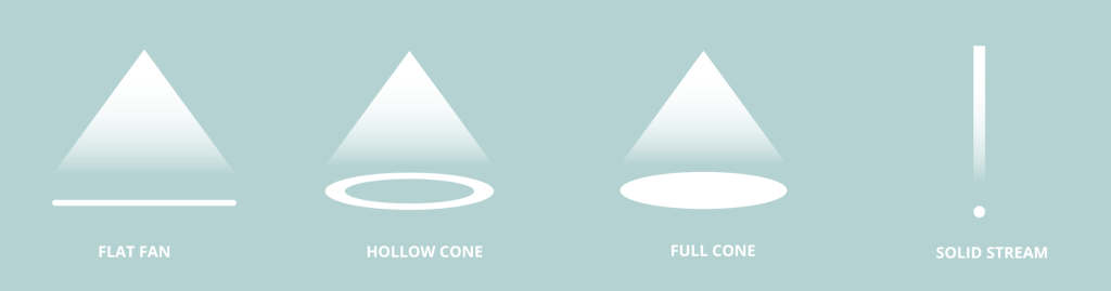 Over het algemeen maken we onderscheid tussen hydraulisch en pneumatisch als we het hebben over industriële sproeisystemen. Hydraulische nozzles gebruiken alleen vloeistofdruk, terwijl pneumatische nozzles lucht- en vloeistofdruk gebruiken.
